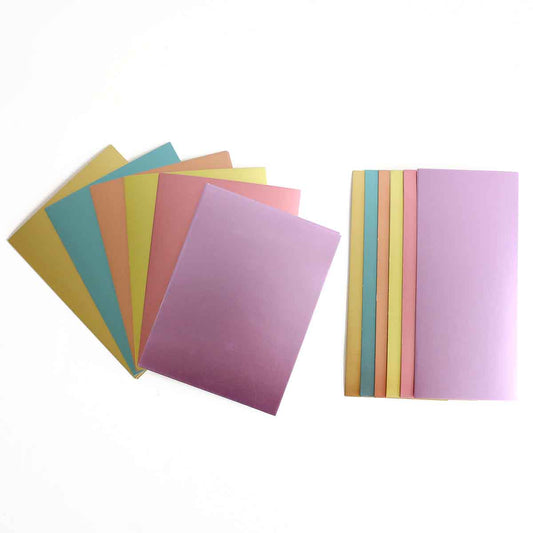 Our basic card stock paper comes in two beautiful sizes: 6” x 8” and 4.25” x 9.25”. Each pack includes 36 sheets of matte foil cardstock—6 sheets each of 6 stunning colors. These sizes are perfect for creating elegant cards, scrapbook pages, and other lovely projects, giving you versatility and a luxurious finish for all your crafting needs!