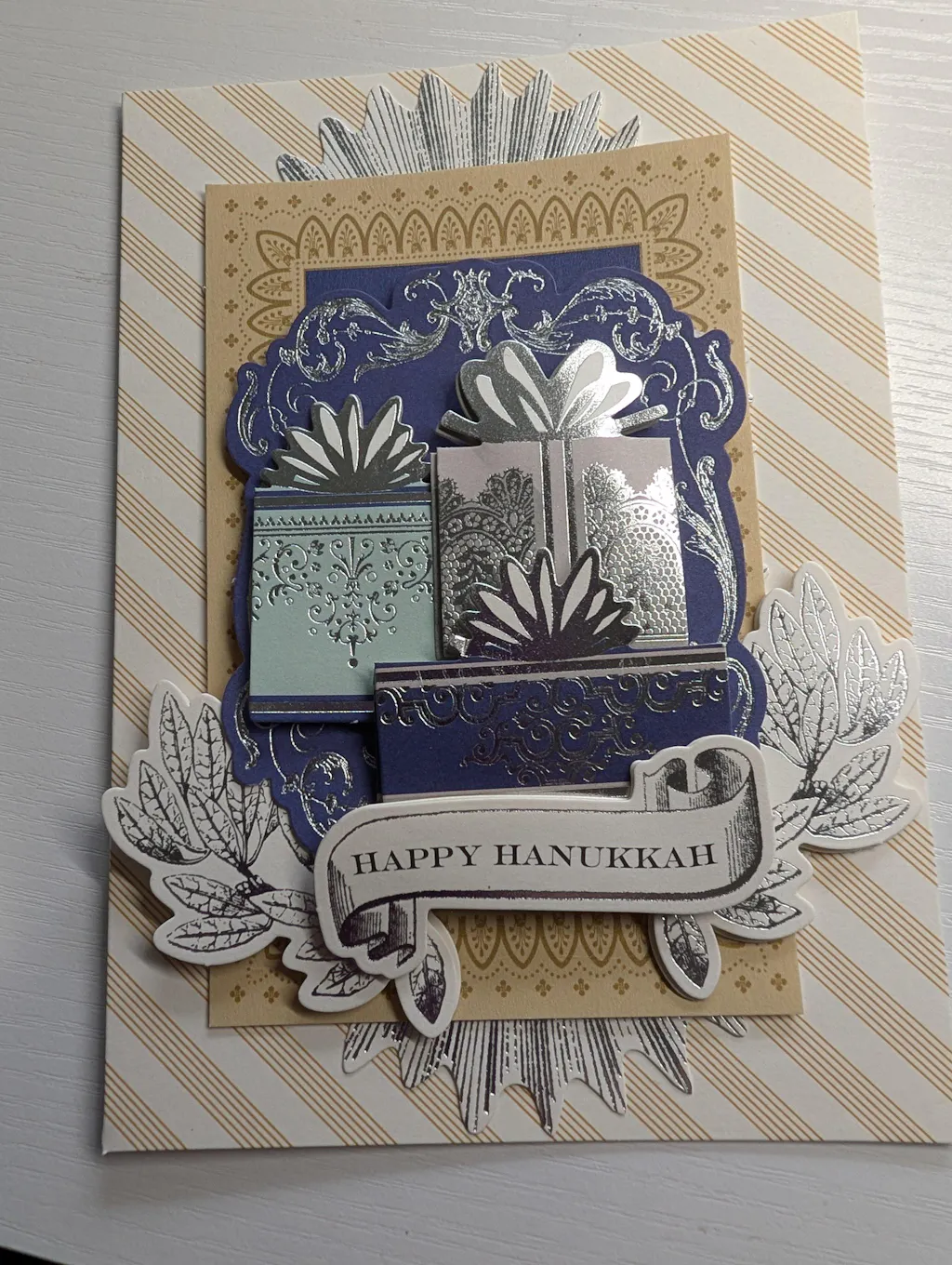 I love this Hanukkah card making kit!! It is so beautiful and easy to make cards!! The recipients who receive the cards absolutely love them.!! One person even framed the card as they have never seen or received anything so beautiful before!!