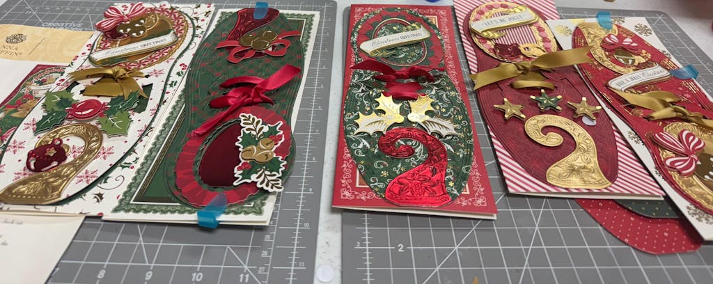 This kit contains so many elements that go with the Elf Shoe dies. They are amazing and make your cards look special.